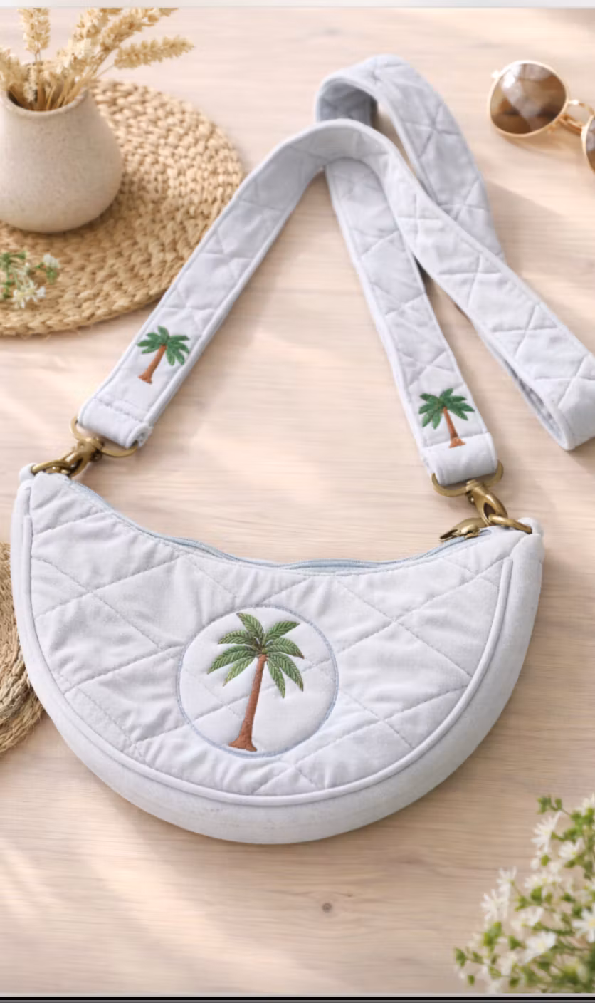 En mjuk och quiltad crossover-väska med broderad palm – en del av vår Palmserie. Väskan har en avslappnad form och är perfekt för det du vill bära med dig varje dag.