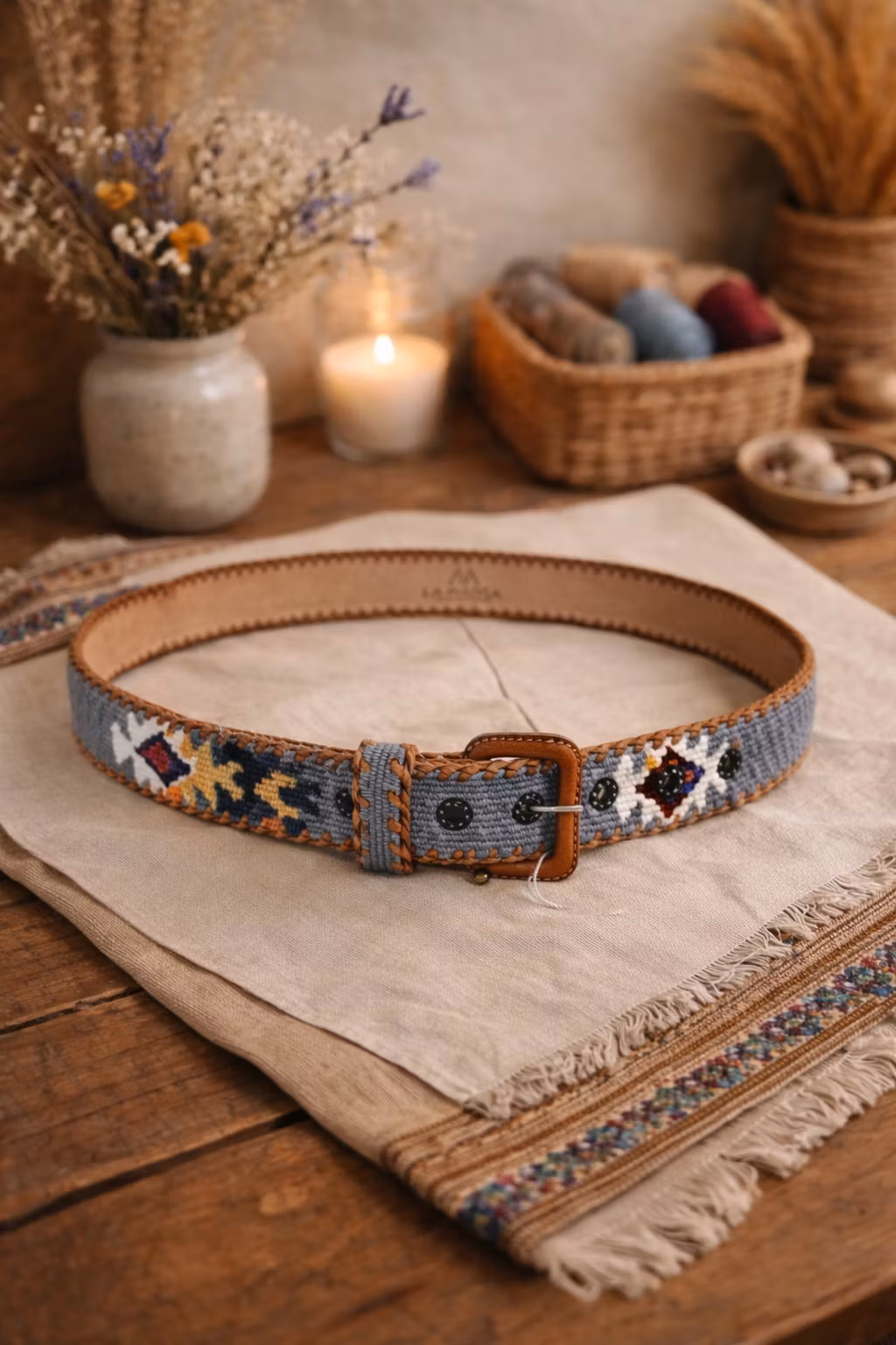 Ett handgjort skärp från Guatemala, vävt med traditionella tekniker och rik på färg, struktur och själ. Varje detalj bär spår av hantverk, kultur och tidlös bohemisk elegans – skapat för att lyfta både vardag och statement-looks.