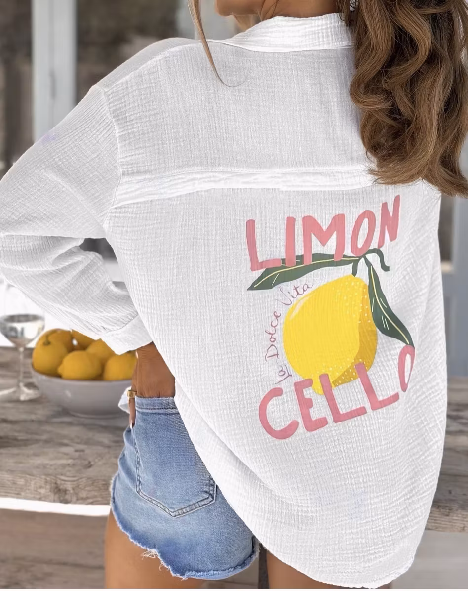 En luftig och avslappnad oversized skjorta i mjuk bomullsgaze – perfekt för varma dagar och lediga sommarkvällar. Den stilrena framsidan kombineras med ett lekfullt tryck på ryggen som ger plagget en personlig och trendig känsla.