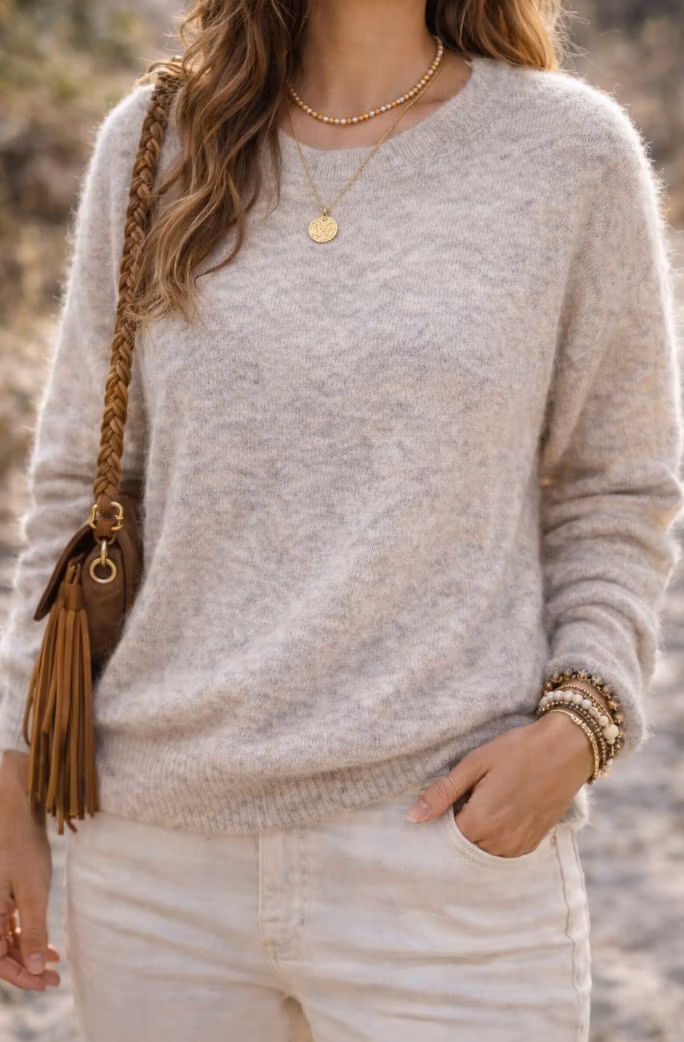 En mjuk och lyxig mohairtröja i en tidlös ash grey-nyans som passar året runt. Tröjan har en avslappnad, smickrande passform i one size, vilket gör den enkel att bära både till vardag och mer uppklädda tillfällen.