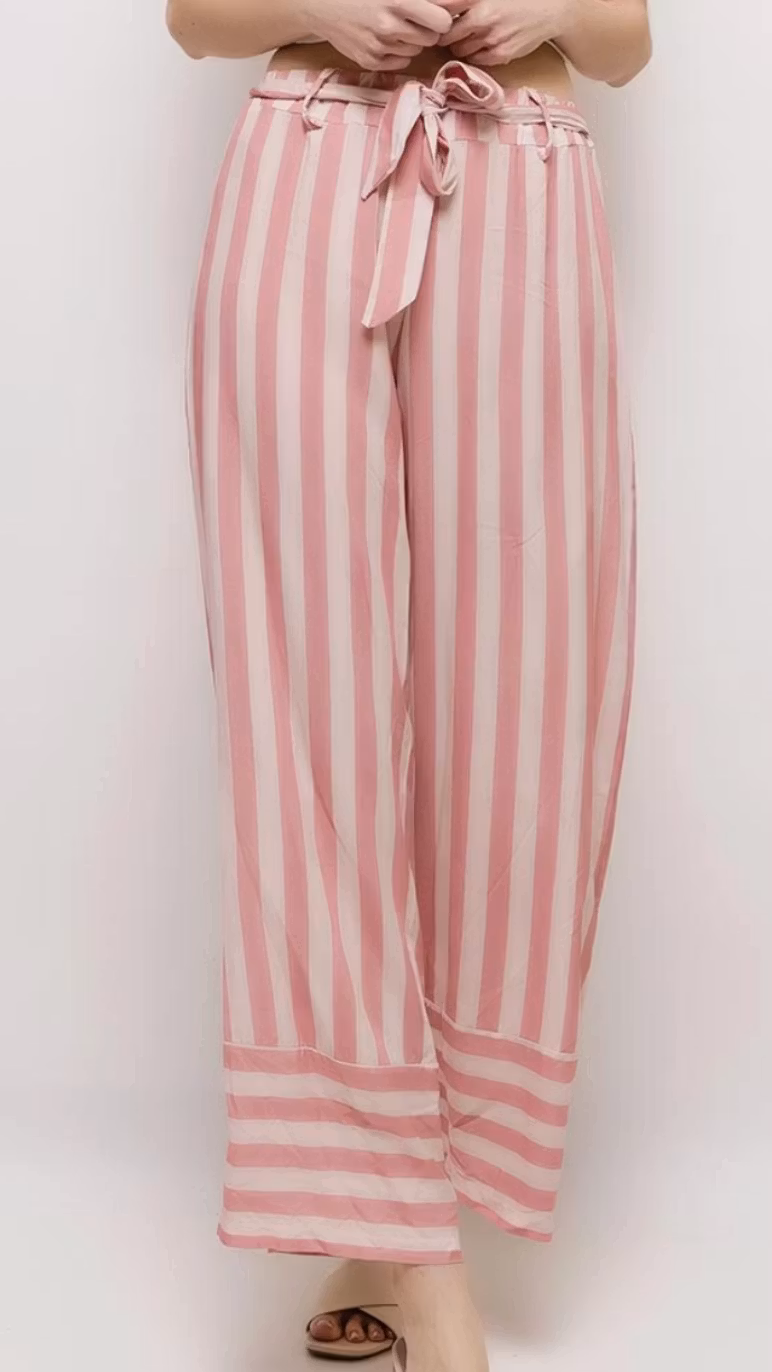 Svala Rosa-Vita Bredrandiga Byxor i Viskos – För en Fräsch Sommarlook